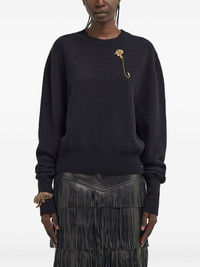 rose-embellished wool sweater Highlights - Black - Virgin wool - Round neck - Balloon sleeves - Rose embellishment Made in Italy Composition Virgin Wool 100% Washing instructions Read Manufacturer Guidelines