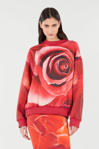 ID: UKT67B-HUN48-02000 Add a touch of romantic luxury to your everyday outfits with this Roberto Cavalli sweatshirt embellished with a refined maxi-rose print, one of which is strategically placed on the front. The garment has not done away with the comfort of its design thanks to the rib-knit on the neck, cuffs and hem and the long sleeves with dropped shoulders. Details - Pure cotton sweatshirt - Maxi-rose print - Stand-up collar - Long sleeves with dropped shoulders - Rib-knit neck, cuffs and hem Care & maintenance External fabric:100% Cotton / Secondary fabric:100% Cotton