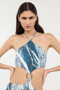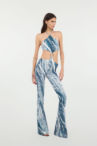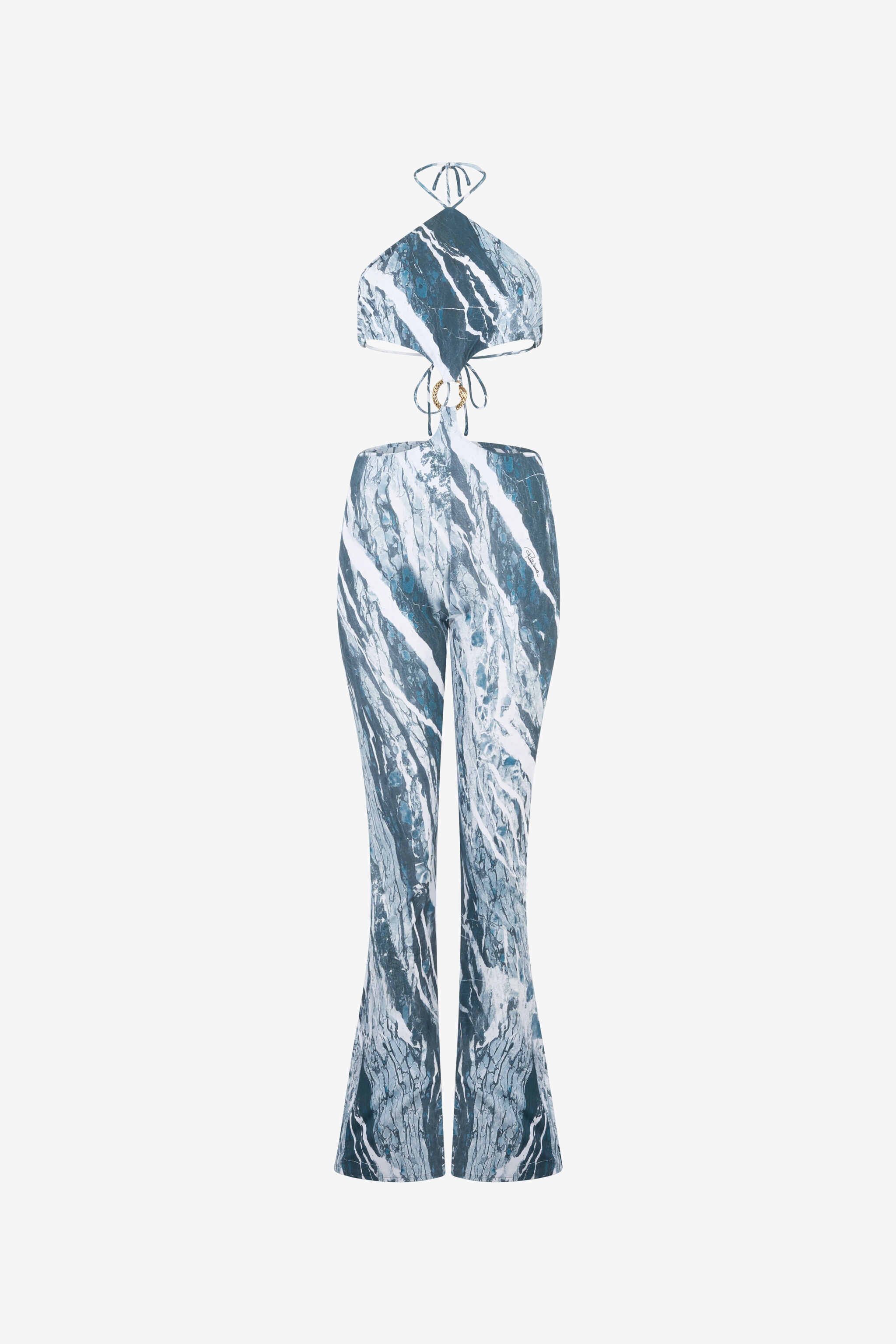 ID: UKT104-LNN22-04964 Make a real style statement with this Roberto Cavalli jumpsuit featuring the iconic Rubane all-over print. The garment features a halter neckline with slim straps that tie at the back and a crop top that connects to the long trousers thanks to a golden ring formed by a twisting snake intent, creating eye-catching cut-outs on the sides and leaving the back bare. Details - Rubane-Print Jumpsuit - Small Roberto Cavalli signatures - Long pants - Top with cut-outs on sides - Backless - Halterneck with slim shoulder straps - Laces to be tied at the back - Golden snake ring on the front Care & maintenance External fabric:86% Polybutylene terephthalate, 14% Elastane