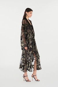 ID: VQT502-FC006-Z0309 Let yourself be enveloped by this refined Roberto Cavalli silk-blend robe, featuring a see-through effect base on which a precious velvet-effect floral pattern stands out with shiny finishes. The model is complemented by a matching belt to be tied at the waist. Details - Silk-blend see-through robe - Velvet-effect floral design with shiny finishes - Matching belt to be tied at the waist - Roberto Cavalli label on the inside collar - Made in Italy