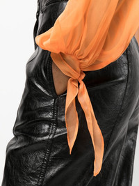 semi-sheer silk blouse Highlights - Apricot - Silk - Semi-sheer construction - Gathered detailing - Buttoned central rear vent - High neck - Long wide sleeves - Tied cuffs - Straight hem Made in Italy Composition Silk 100% Washing instructions Dry Clean Only