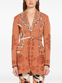 sequin-embellished fitted jacket Highlights - Brown - Front-button fastening - Long sleeves - Notched lapels - Back vent Made in Italy Composition Outer: Linen/Flax 51%, Polyester 49% Lining: Viscose 57%, Polyester 49% Washing instructions Read Manufacturer Guidelines
