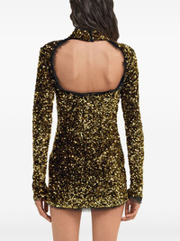 sequin-embellished mini dress Highlights - Gold-tone - All-over sequin embellishment - High neck - Long sleeves - Open-back setting - Straight hem - Thigh-length Made in Italy Composition Outer: Silk 100%, Polyester 95%, Elastane 5% Lining: Polyamide 92%, Acetate 87%, Silk 13%, Elastane 8%