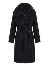 shearling-collar coat Highlights - Black - Belted waist - Shearling collar - Long sleeves - Side pockets Made in Italy Composition Virgin Wool 100%
