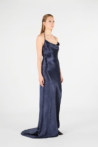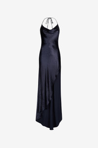 ID: UWT125-TO009-04502 An ode to sophisticated elegance, this long dress catches the eye with its cowl neck and asymmetrical cut. The model is 178 cm tall and wears size S / 40, highlighting the impeccable fit of this garment. Details - Elegant design with draped neckline - Side slit that adds a touch of sensuality - Ideal for evening events and special occasions - Made in: Italy - Perfect paired with high heels and minimalist accessories - Fluid silhouette that enhances the figure Care & maintenance External fabric:100% Polyester