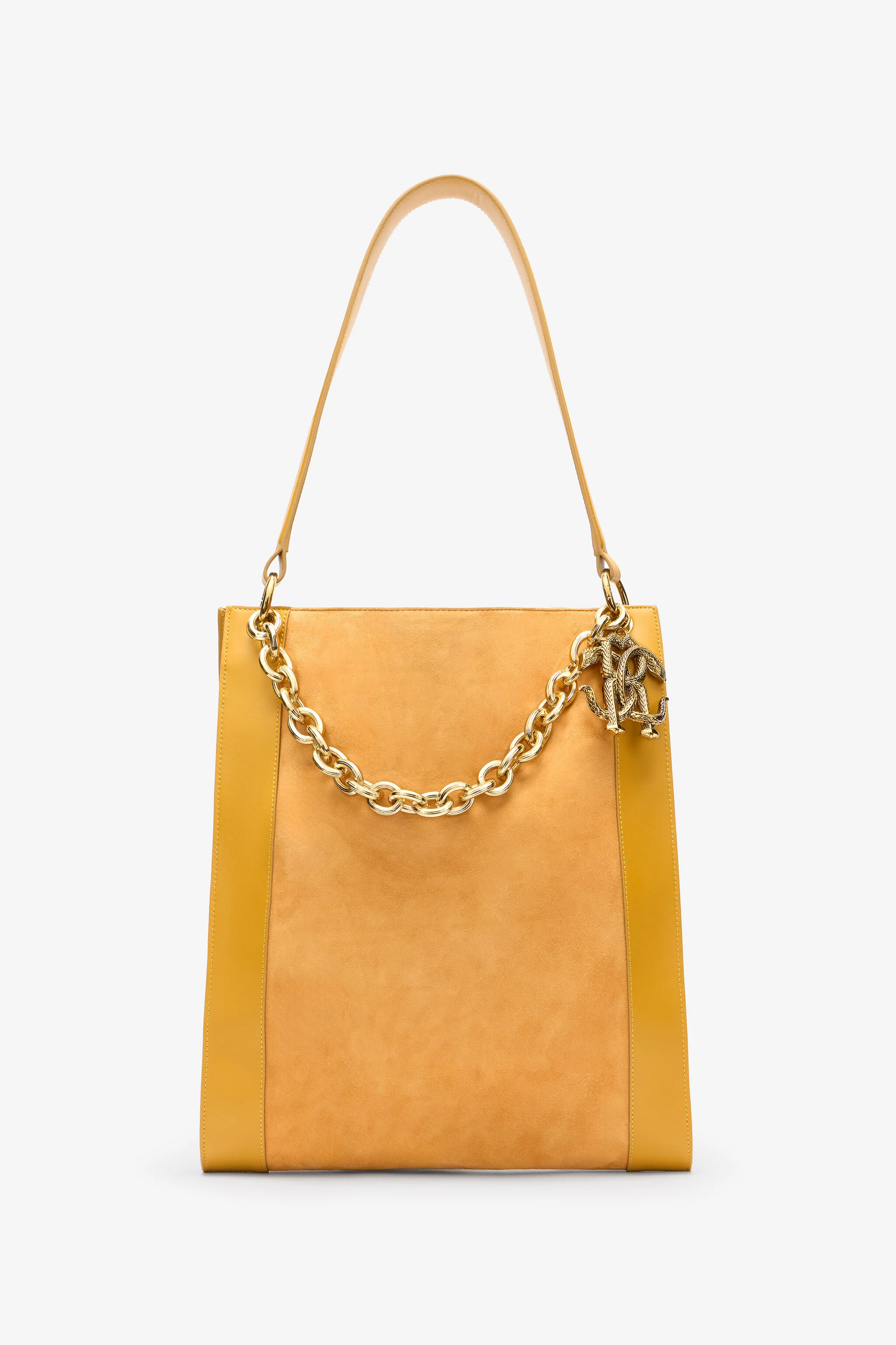 ID: VKB005-PC219-01004 The perfect combination of elegance and functionality, this shoulder bag by Roberto Cavalli will bring a touch of luxury to your everyday looks. The style, characterized by a spacious silhouette that extends vertically, plays on the contrast of textures created by the smooth side panels and the central panels with a suede effect. The accessory is complete with a convenient top handle and is enriched by a chain with thick links, embellished with a charm with the iconic Mirror Snake Monogram, which lends itself both to falling on the front in the form of a decorative element, and to being used as a second handle. Details - Large shoulder bag - Spacious design - Vertical rectangular design - Smooth-textured side panels - Central panel with suede texture - Top handle - Decorative chain to be used as a handle - Charm with Mirror Snake Monogram - Top opening - Contrasting animal print lining