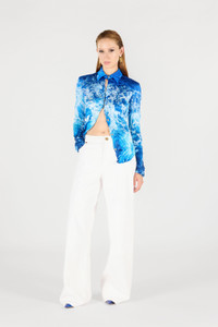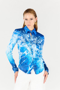 ID: UWT701-RYN94-04927 The "Stretto di Messina" print shirt is a distinctive garment that captures the essence of the sea. Perfect for those who want a sophisticated and original look. The model is 178 cm tall and wears size S / 40. Details - Artistic print design. - Front closure with jewel buttons. - Ideal for a casual-chic look. - Made in: Italy - Perfect for day or evening outfits, paired with elegant trousers or jeans. - Available in different sizes. Care & maintenance External fabric:100% Silk