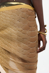 ID: WWI005-SQS31-D0530 Bring Roberto Cavalli elegance to the beach or poolside with this pure silk pareo, distinguished by an all-over scale-effect print inspired by snake skin. The look is finished with solid contrast borders. Details - Pure silk pareo - All-over scale-effect print - Contrasting borders - 190x130x130