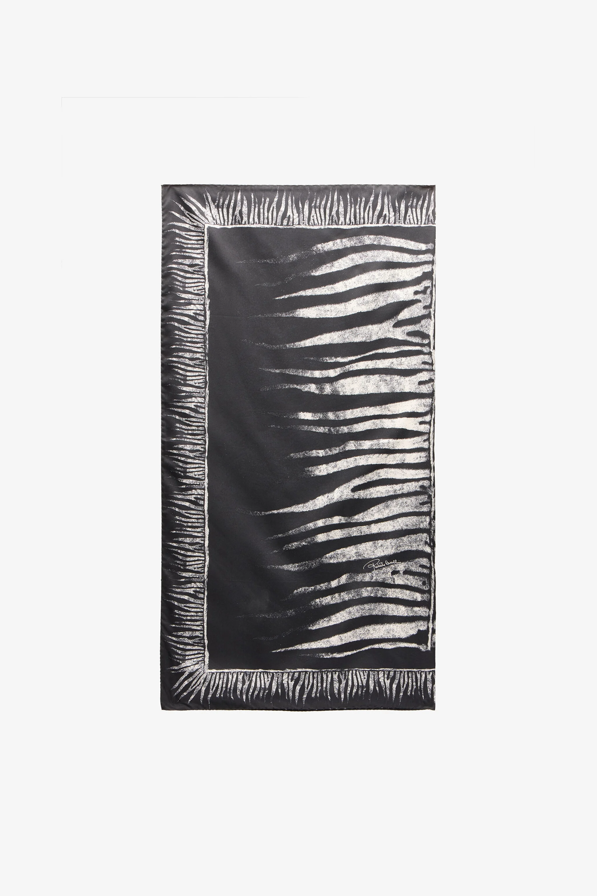 ID: UALR04-IR104-E0467 The emblematic Zebra print in a macro version in the center and micro along the edges: this is how the brand is paying tribute to its distinctive style in this pure silk scarf, an expression of the wild elegance that has always distinguished it. The Roberto Cavalli signature pairs with the print and completes the accessory. Details - Pure silk scarf - Zebra print that is macro in the center and micro along the edges - Roberto Cavalli signature near the print Care & maintenance External fabric:100% Silk