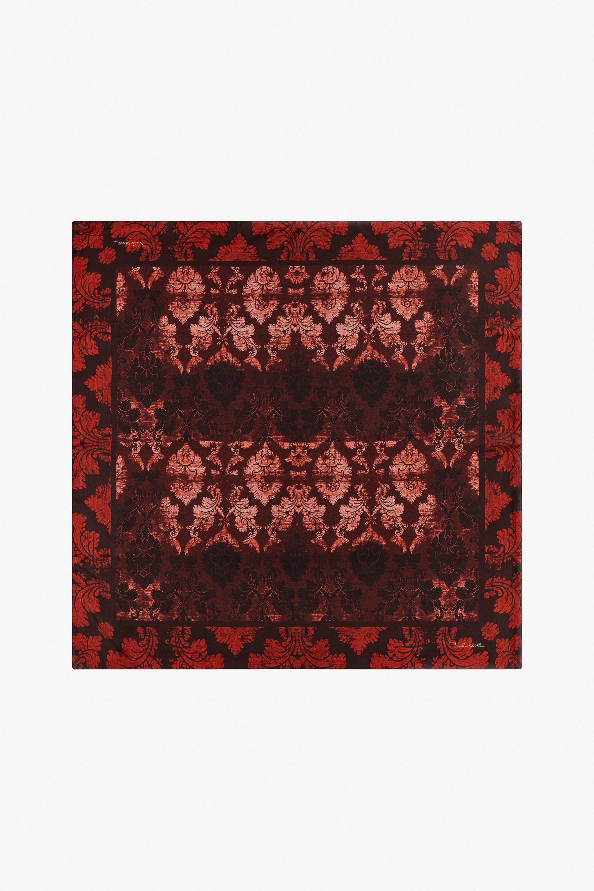 ID: TALR58-IR075-J0505 A refined Brocade print with an antique effect extends over the entire surface of this pure silk scarf, perfectly embodying the idea of whimsical luxury that has always guided the Maison's creations. The Roberto Cavalli signature at the corners completes the accessory. Details - Pure silk scarf - All-over antique effect Brocade Print - Roberto Cavalli signature on the corners - Measures 90X90 cm Care & maintenance External fabric:100% Silk