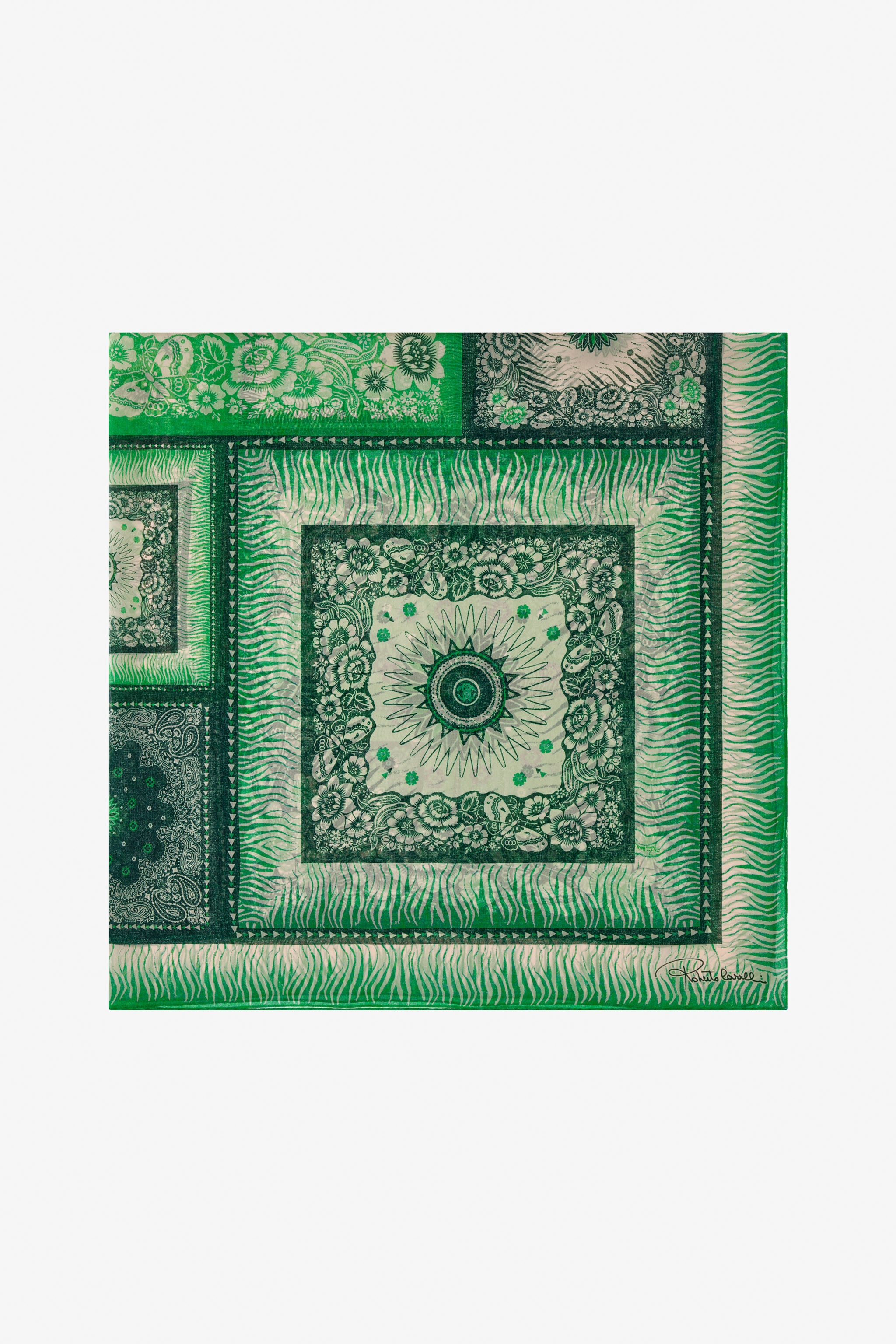 ID: TALR31-IR048-J0324 Roberto Cavalli never ceases to reinvent its distinctive codes, expressing them in this pure silk shawl decorated with a squared print in which the unmistakable Zebra pattern frames a sun surrounded by an original design with flowers and butterflies. The accessory is finished with the elegant Roberto Cavalli signature on one corner. Details - Pure silk shawl - Print with squares decorated with sun, flowers and butterflies and Zebra pattern - Roberto Cavalli signature on one corner - Measures 140X140 cm Care & maintenance External fabric:100% Silk