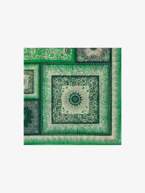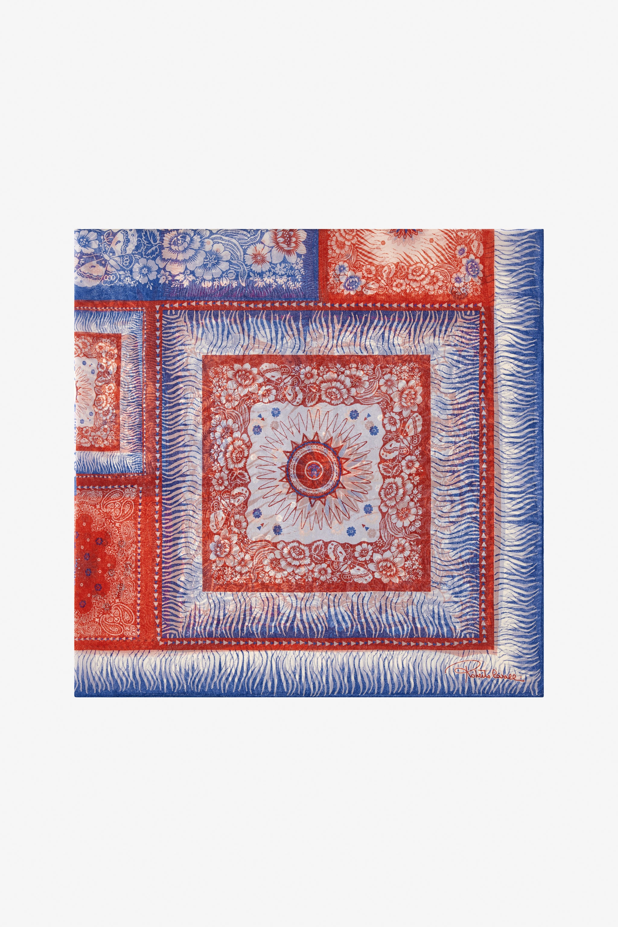 ID: TALR31-IR048-E0382 Roberto Cavalli never ceases to reinvent its distinctive codes, expressing them in this pure silk shawl decorated with a squared print in which the unmistakable Zebra pattern frames a sun surrounded by an original design with flowers and butterflies. The accessory is finished with the elegant Roberto Cavalli signature on one corner. Details - Pure silk shawl - Print with squares decorated with sun, flowers and butterflies and Zebra pattern - Roberto Cavalli signature on one corner - Measures 140X140 cm Care & maintenance External fabric:100% Silk