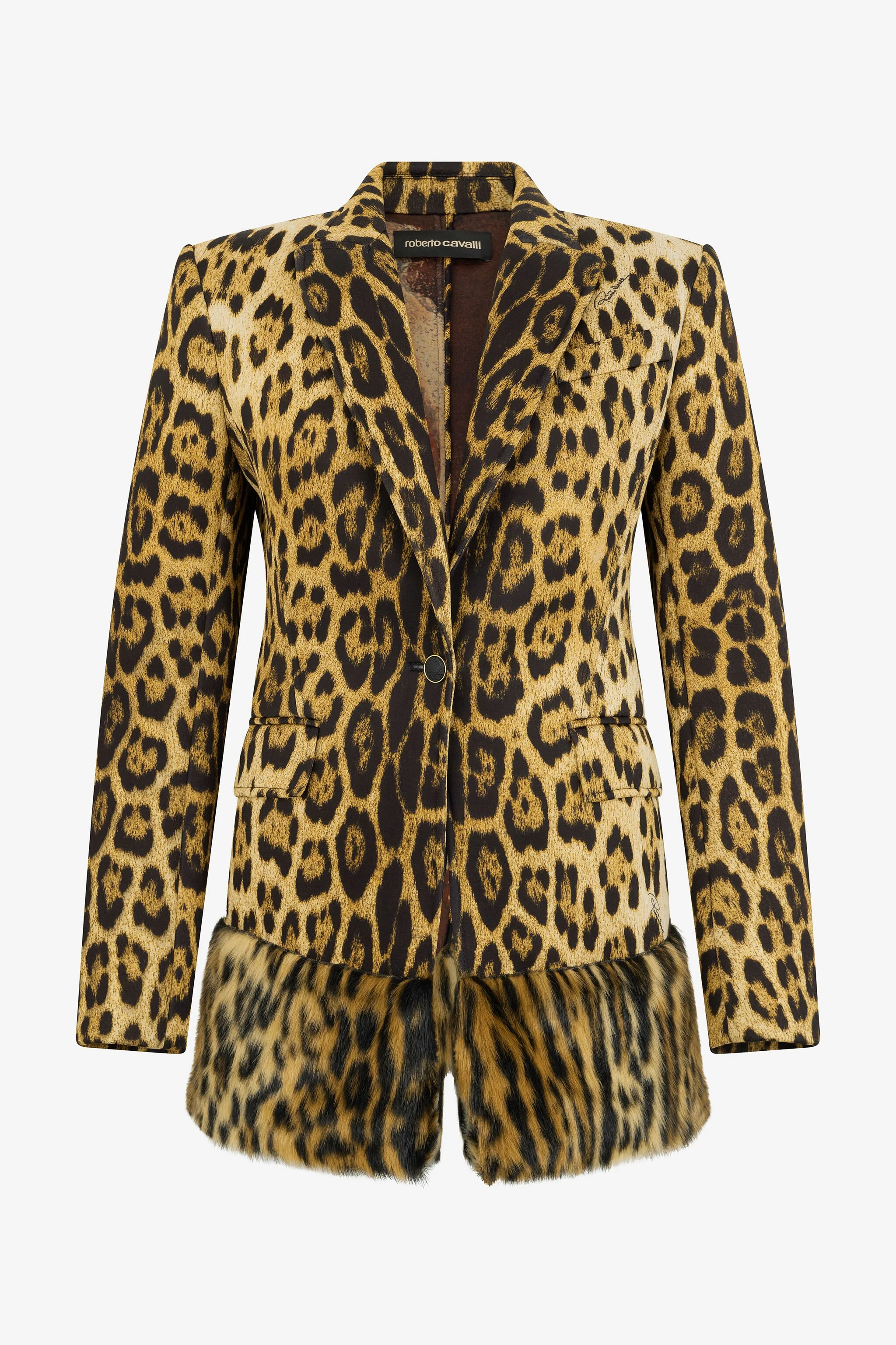 ID: VWT401-SVQ71-00504 In perfect harmony with the Maison’s signature passion for animal print, Roberto Cavalli presents a bold single-breasted blazer featuring an all-over Jaguar Skin pattern, also showcased on the luxurious fur-effect panel at the hem. Details - Single-breasted blazer with Jaguar Skin print - Peak lapels - Long sleeves - Welt pocket on the chest - Two front pockets with flap - Fur-effect panel at the hem - Single-breasted fastening with one button - Roberto Cavalli label on the inside collar - Back vent Care & maintenance External fabric:90% Polyester, 10% Elastane / Secondary fabric:50% Polyester, 50% Modacrylic / Lining:100% Silk