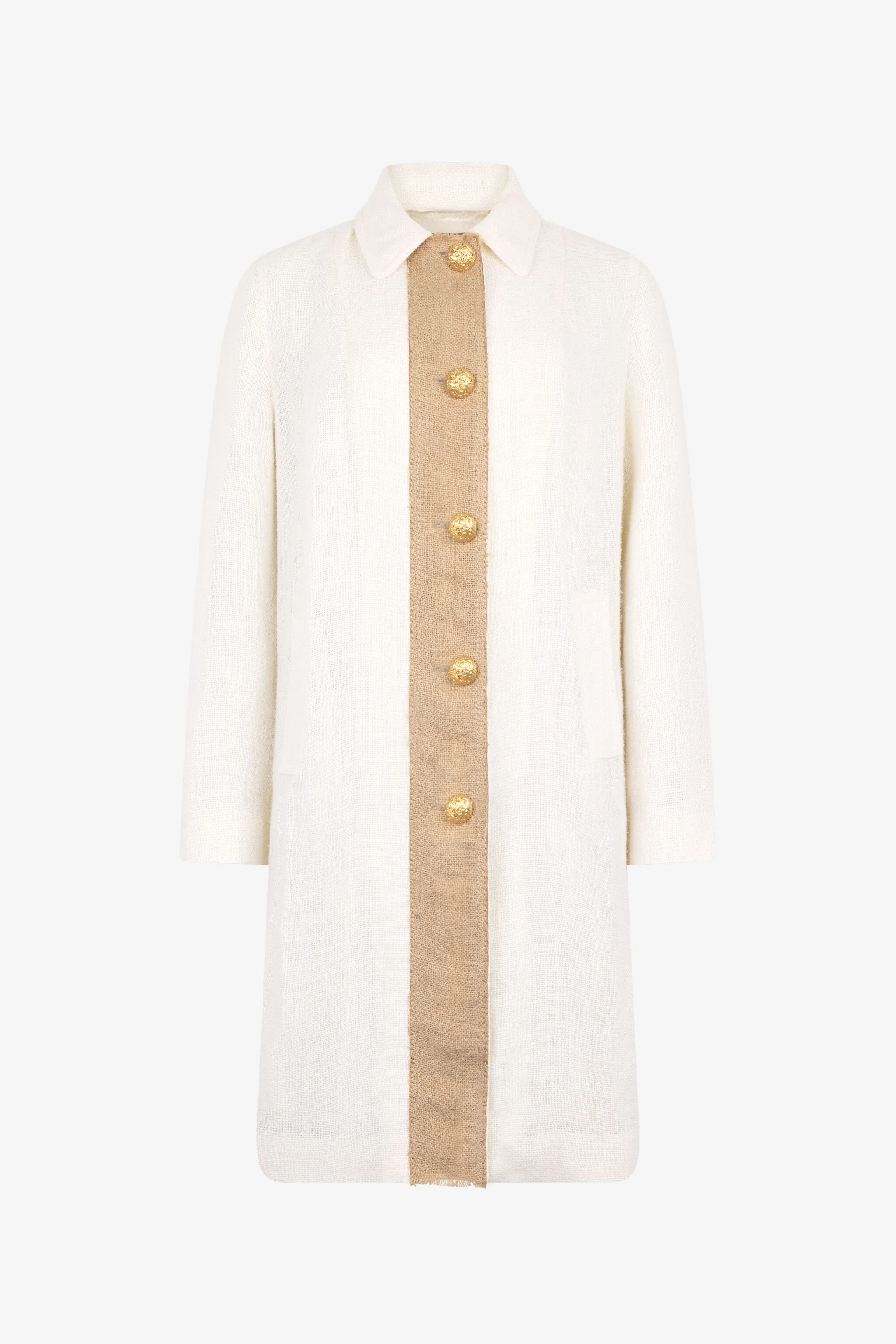 ID: UWT500-FY036-00064 This Wall print coat is a sophisticated and elegant garment, perfect for adding a touch of originality to your wardrobe. The model is 178 cm tall and wears size S / 40. Details - Elegant and refined design - Ideal for creating sophisticated looks - Front closure with golden buttons - Made in: Italy - Perfect for special events or a sophisticated everyday look Care & maintenance External fabric:100% Jute / Secondary fabric:100% Jute / Lining:100% Polyester