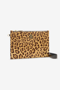 ID: VKA005-ZV012-00504 An authentic tribute to the distinctive style of the Roberto Cavalli universe, this clutch with a flat and rectangular design is decorated with a roaring Jaguar Skin print on the entire surface and is embellished with a small Mirror Snake Monogram in a gold metallic version on the front. The accessory, which has a convenient zip fastening at the top and a branded pull-tab, can be carried conveniently by hand thanks to the removable wrist strap. Details - Clutch with all-over Jaguar Skin print - Flat rectangular design - Metallic Mirror Snake Monogram on the front - Top fastening with zipper - Branded pull-tab - Wrist strap - Inside label with Roberto Cavalli logo - Made in Italy
