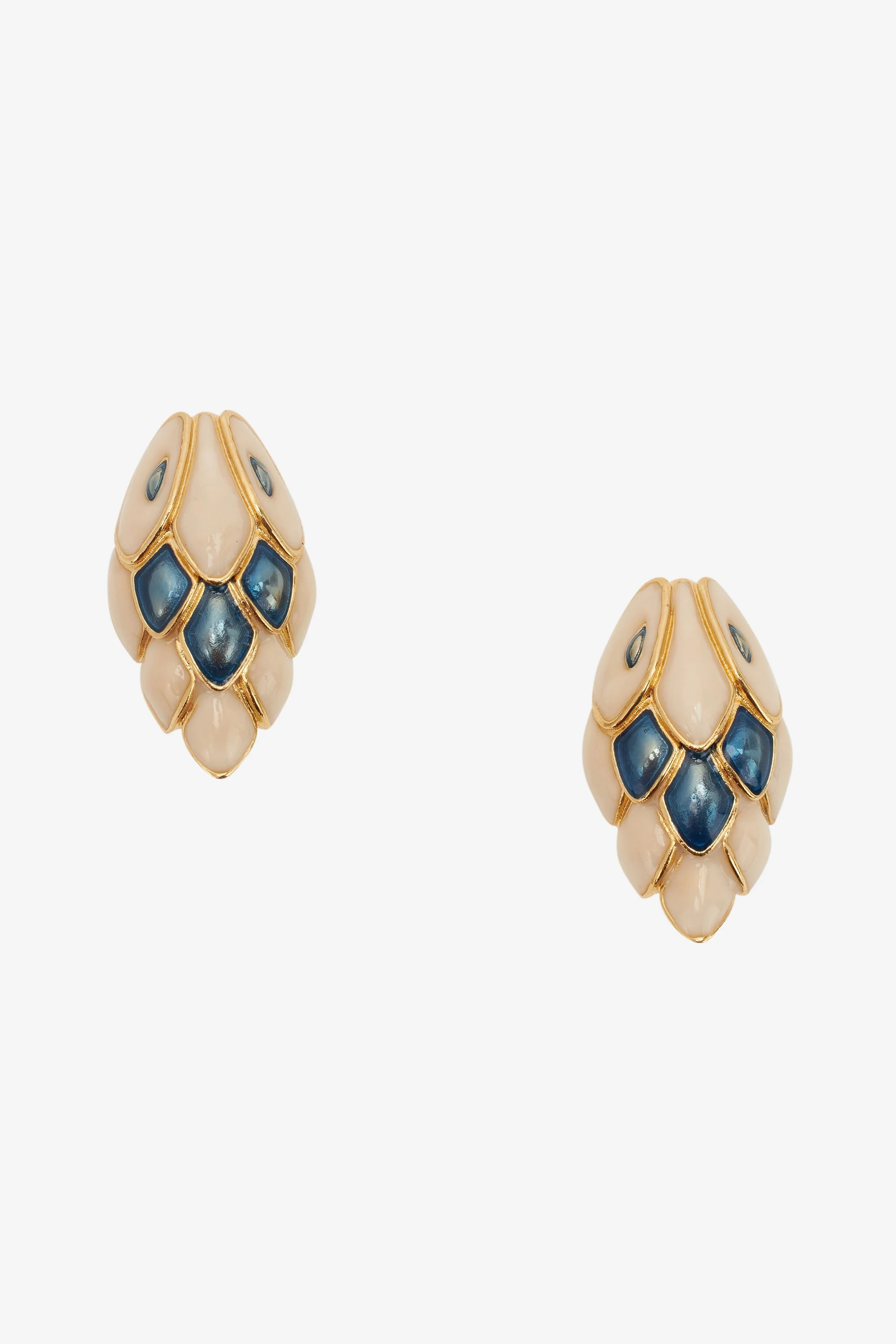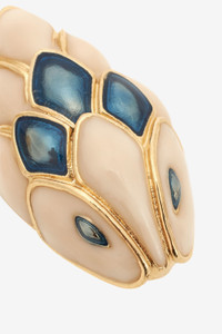 ID: UKG020-AM021-T0136 The snake, one of the most iconic symbols of the Roberto Cavalli universe, is the total star of these original and striking clip-on earrings. This enameled accessory is formed by the head of a snake, on which its scales and eyes stand out in a contrasting shade, made even more noticeable by the gold-colored finishes. Details - Snake head earrings - Clip-on - Contrasting scales and eyes - Golden and enameled finish - Roberto Cavalli logo tag on the back - Earrings sold in pairs - Made in Italy Care & maintenance Composition:Brass, Enamel