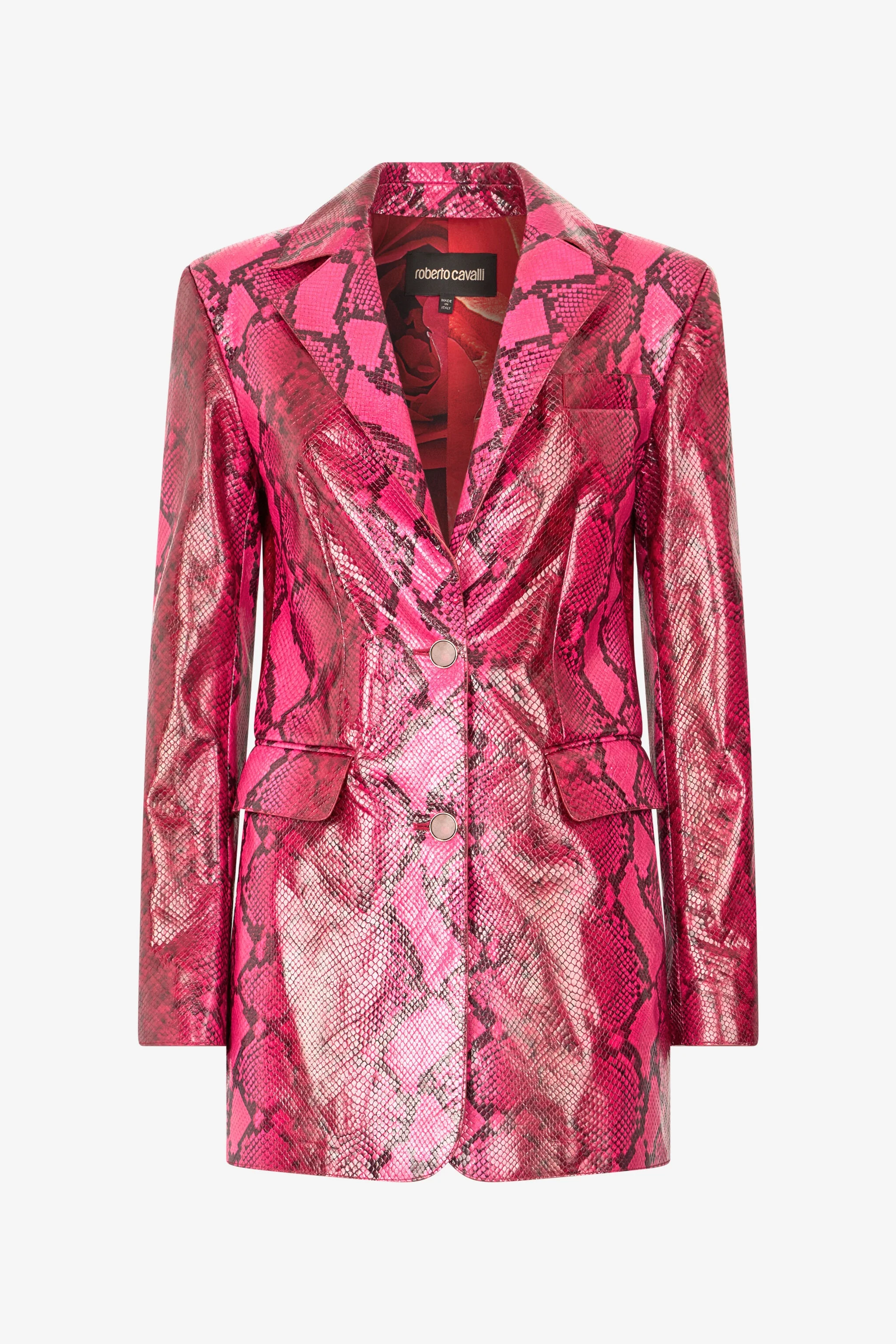 ID: UKP400-PN053-D0446 A new take on the Maison's iconic details, this shiny leather jacket features an all-over python scale-effect print for a touch of wild elegance. Details - Glossy-effect leather jacket - Lined model - All-over python scale-effect print - Classic lapels - One welt breast pocket - Front flap pockets - Single-breasted two-button fastening - Roberto Cavalli label on the interior - Made in Italy Care & maintenance Leather - Fur:Aegagrus Hircus / Lining:100% Polyester / Secondary lining:100% Cotton