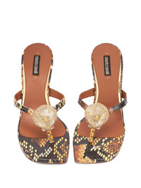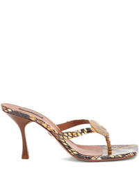 snake-print heeled sandals Highlights - Snake print design - Toe post embellishment - High cone heel - Slip-on style - Brown Made in Italy Composition Sole: Calf Leather 100% Outer: Calf Leather 100% Lining: Calf Leather 100%