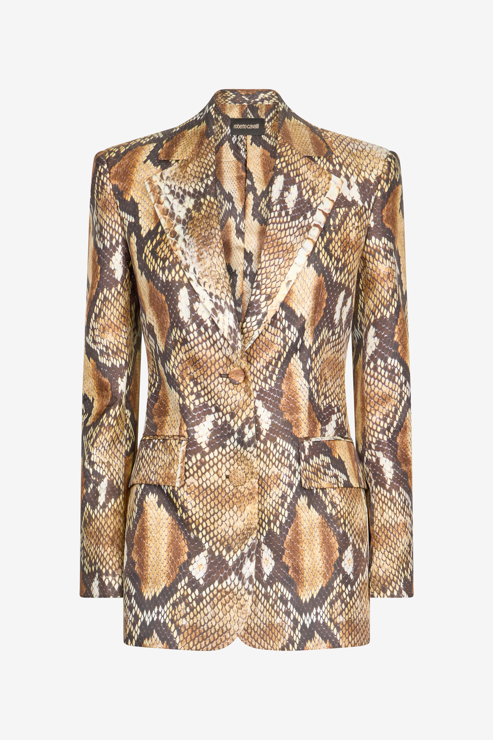 ID: UWT405-4QN93-J0256 This jacket with Python print is a bold and refined garment, perfect for adding a touch of luxury to your wardrobe. The animal print gives a wild and elegant air. The model is 178 cm tall and wears size S / 40. Details - Elegant and sophisticated design - Iconic animal print - Single-breasted closure - Made in: Italy - Perfect for evening events and special occasions - Pair with tailored trousers or a pencil skirt Care & maintenance External fabric:100% Silk / Lining:100% Polyester