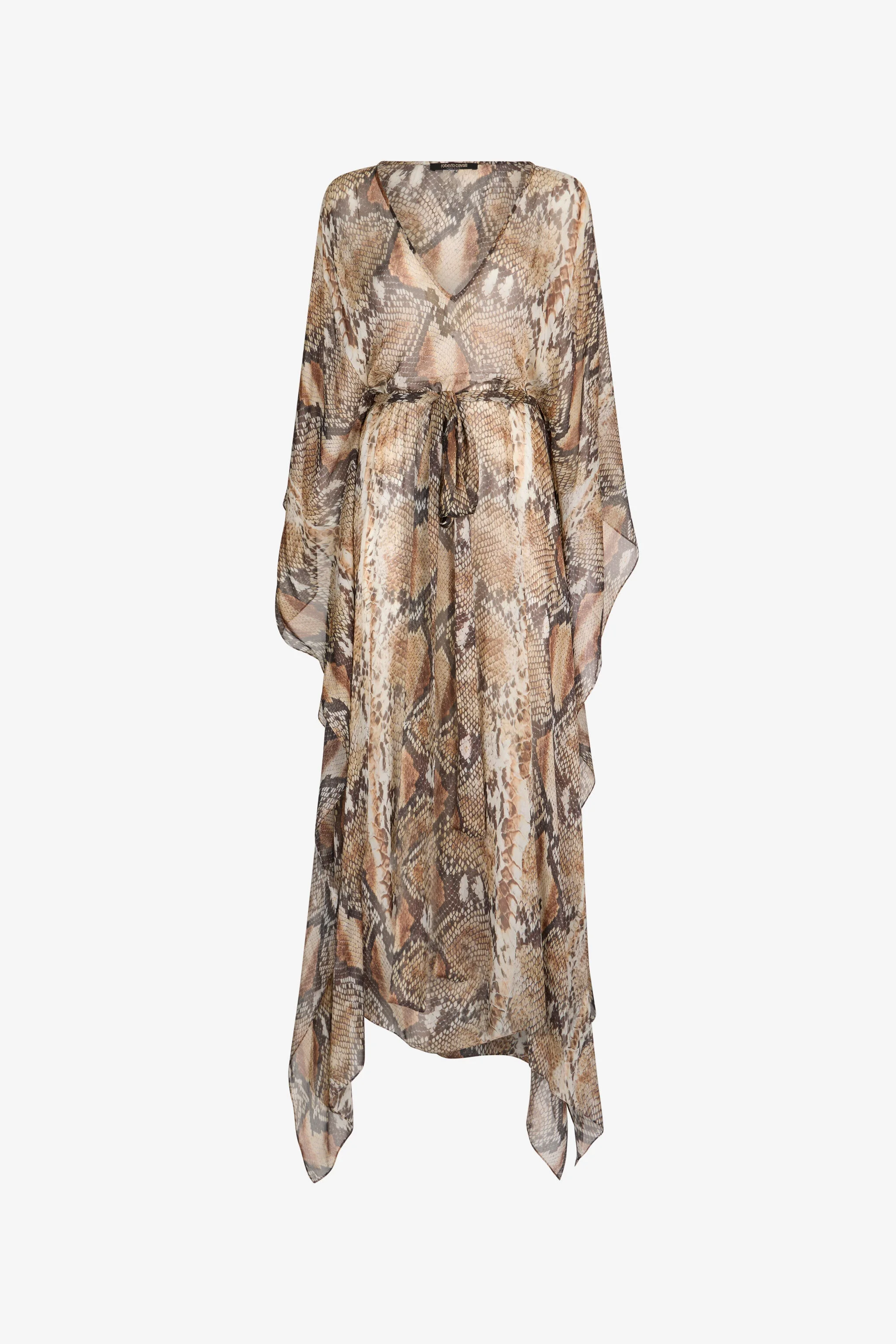 ID: UWW005-HNN93-J0256 This Python print kaftan is the perfect addition to your summer wardrobe. The lightweight and flowing design makes it ideal to wear over your swimsuit or as an elegant evening dress. The Python print adds a touch of luxury and originality. The model is 178 cm tall and wears size S / 40. Details - Loose and comfortable design - Waist belt to define the silhouette - Deep V-neck - Made in: Italy - Ideal as a cover-up or light dress for summer evenings. - Perfect for an elegant and sophisticated look.