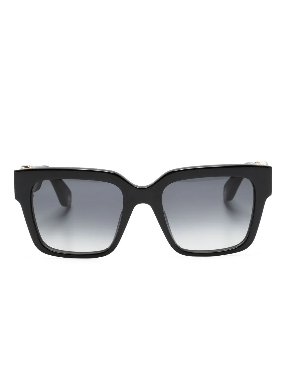 square-frame sunglasses Highlights - Black - Acetate - Square frame - Grey tinted lenses - Gold-tone logo plaque to the arm - Straight arms with curved tips - These glasses come with a protective case. Made in Italy Composition Acetate 100% SIZE & FIT Measurement Arm Length 5.51 in(14 cm) Bridge Width 0.78 in(2 cm) Lens Diameter 2.12 in(5.4 cm) Total Width 5.51 in(14 cm)