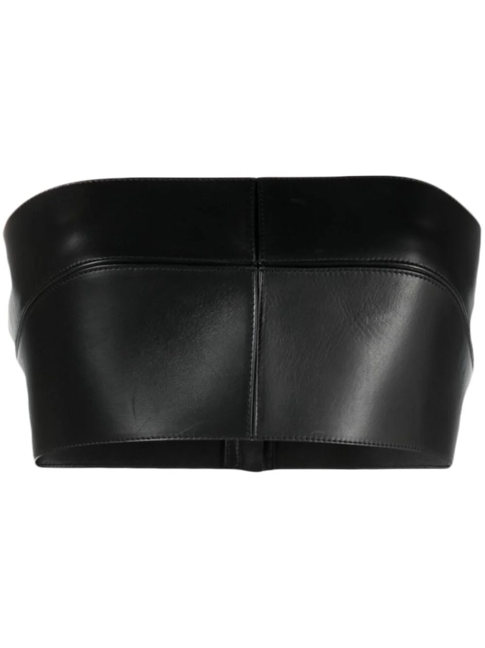 strapless leather bandeau top Roberto Cavalli takes a step back from its usual use of striking patterns to present this bandeau top for SS23. Crafted in black leather, it has a panelled design and rear zip fastening for easier use. Highlights - Black - Calf leather - Panelled design - Rear zip fastening - Strapless - Cropped Made in Italy Composition Calf Leather 100% SIZE & FIT Model measurements Height 5 ft 11 in(1.8 m) Bust/Chest 31.49 in(80 cm) Hips 36.61 in(93 cm) Waist 24.4 in(62 cm) FittingInformation Designed for a very close and sculpting fit Firm leather offering little flexibility to maintain its durability and sturdiness This piece fits true to size – take your usual size Washing instructions Specialist Cleaning