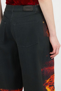 ID: VWJ207-DAQ76-D0087 Roberto Cavalli's creative flair is fully expressed in these explosive-style stretch cotton denim jeans, featuring a print depicting lava that flows on the front and pours down the back leg hem. The signature golden button with the iconic snake and the branded tag on the back pay homage to the Maison's DNA. Details - Stretch cotton denim jeans - Lava print - Five-pocket design - Wide leg - Fastening with branded golden button - Branded tag on back Care & maintenance External fabric:98% Cotton, 2% Elastane / Lining:65% Polyester, 35% Cotton