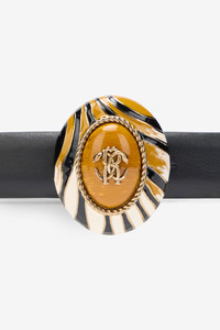 ID: VKC001-PZ796-T0047 A masterpiece of Italian craftsmanship that elevates any look. This Roberto Cavalli belt combines the timeless elegance of fine black leather with the bold statement of its distinctive buckle. The round buckle, a true jewel, features an iconic animalier motif and is embellished with the golden Monogram RC, a symbol of unmistakable style and luxury. An accessory designed not just to cinch the waist, but to define your personality with a touch of audacious glamour. Details - Black leather belt with a streamlined design. - Crafted from fine Bos Taurus leather for a luxurious feel and exceptional durability. - Round jewel buckle with an animalier pattern and gold-tone metal Monogram RC. - Features an adjustable pin-buckle fastening. - Perfect for embellishing dresses, skirts, or for cinching the waist on outerwear. - Pair with an all-black look to make the buckle pop, or with coordinating prints for a bold statement. - Made in Italy. Care & maintenance Leather - Fur:Bos Taurus / Lining:100% Bos Taurus