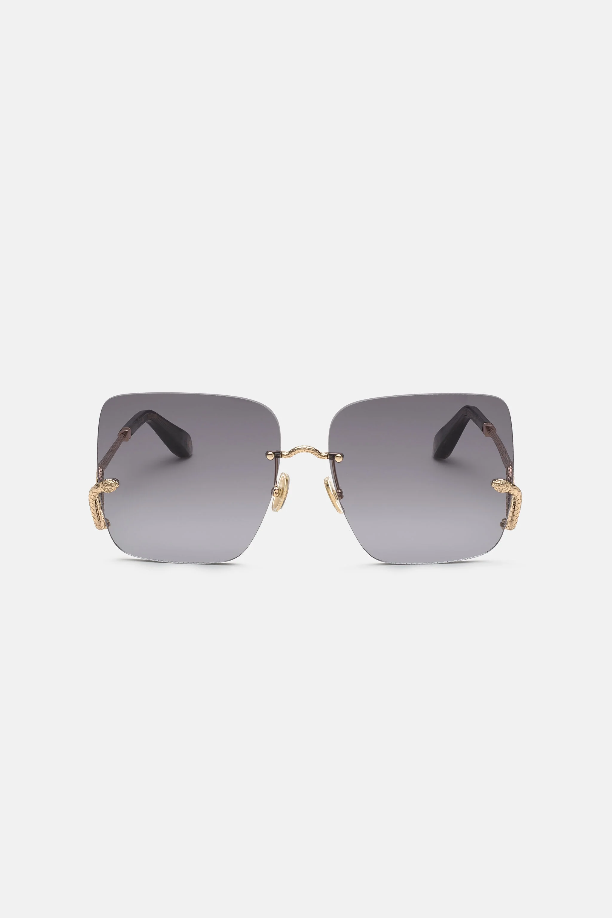 ID: SALD31-ID132-E0340 Wide rimless shape of the front. Introducing an elegant shape of the temples which design reproduces the body of the snake. All the metal parts are engraved to reproduce the skin of the snake effect. Engraved profile of the lenses with the snake pattern effect. Details Wide rimless shape of the front. Introducing an elegant shape of the temples which design reproduces the body of the snake. All the metal parts are engraved to reproduce the skin of the snake effect. Engraved profile of the lenses with the snake pattern effect. - Sunglasses Roberto Cavalli - Snake Collection - Temples with snake body shape - Made in italy - Lenses 63mm Bridge 16mm Temples 145mm Care & maintenance External fabric:40% Polybutylene terephthalate, 25% Rame, 20% Berillio, 15% Acetato
