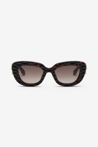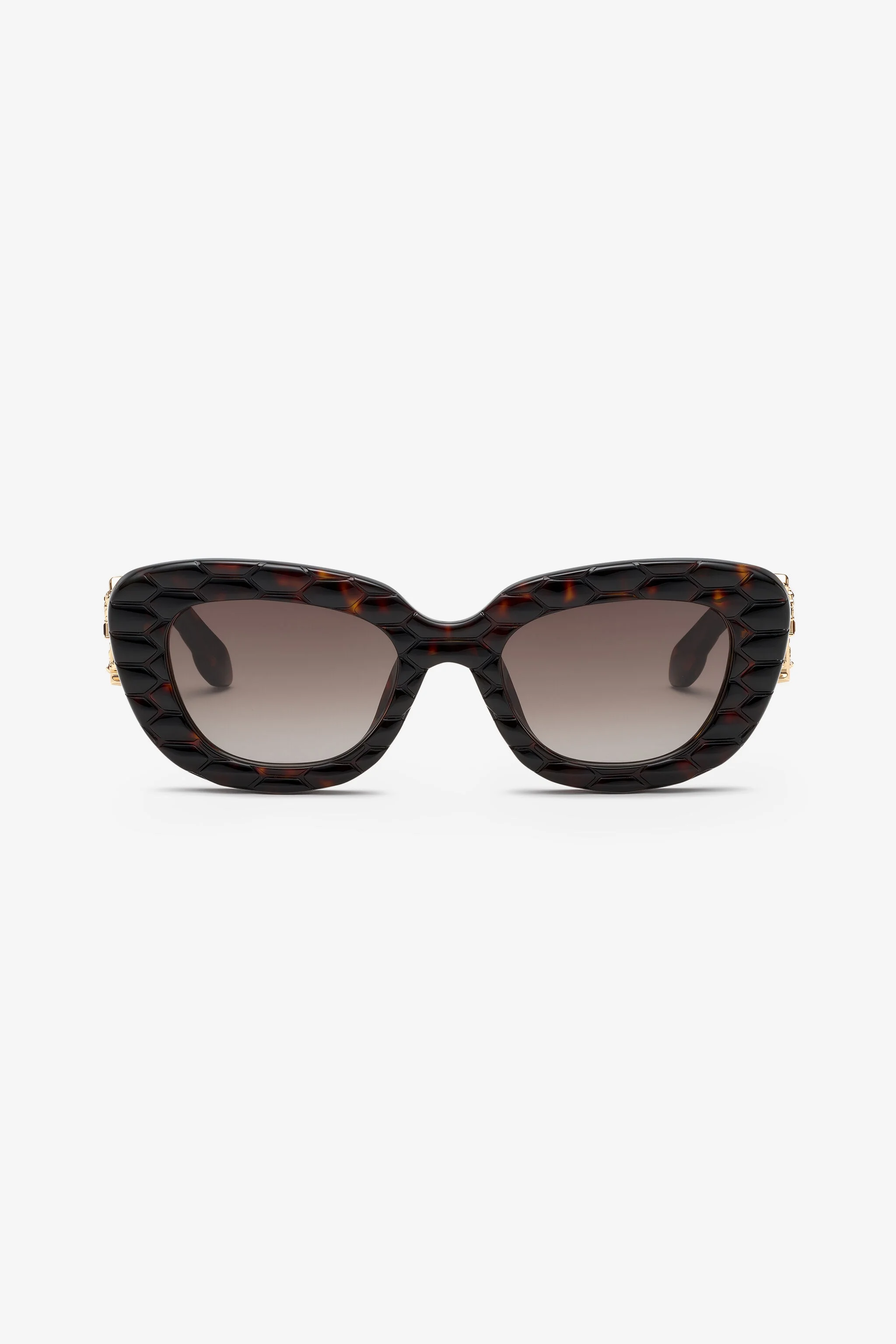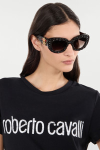 ID: UALD02-ID197-E0361 Bold cat-eye shape of the front. Mirror snake logo. All the color proposal is personalized with the matelasse effect on the front and temples. S version introducing the mirror snake logo enriched with 30 crystals of different size and color Details - Sunglasses Roberto Cavalli - Quilted snake collection - Quilted effect - Made in italy - Lenses 54mm Bridge 22mm Temples 140mm - ID: SRC058S540743 Care & maintenance Composition:Acetato, Polybutylene terephthalate