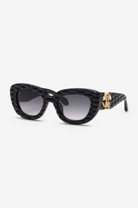 ID: UALD02-ID197-D9889 Bold cat-eye shape of the front. Mirror snake logo. All the color proposal is personalized with the matelasse effect on the front and temples. S version introducing the mirror snake logo enriched with 30 crystals of different size and color Details - Sunglasses Roberto Cavalli - Quilted snake collection - Quilted effect - Made in italy - Lenses 54mm Bridge 22mm Temples 140mm - ID: SRC058S540700 Care & maintenance Composition:Acetato, Polybutylene terephthalate