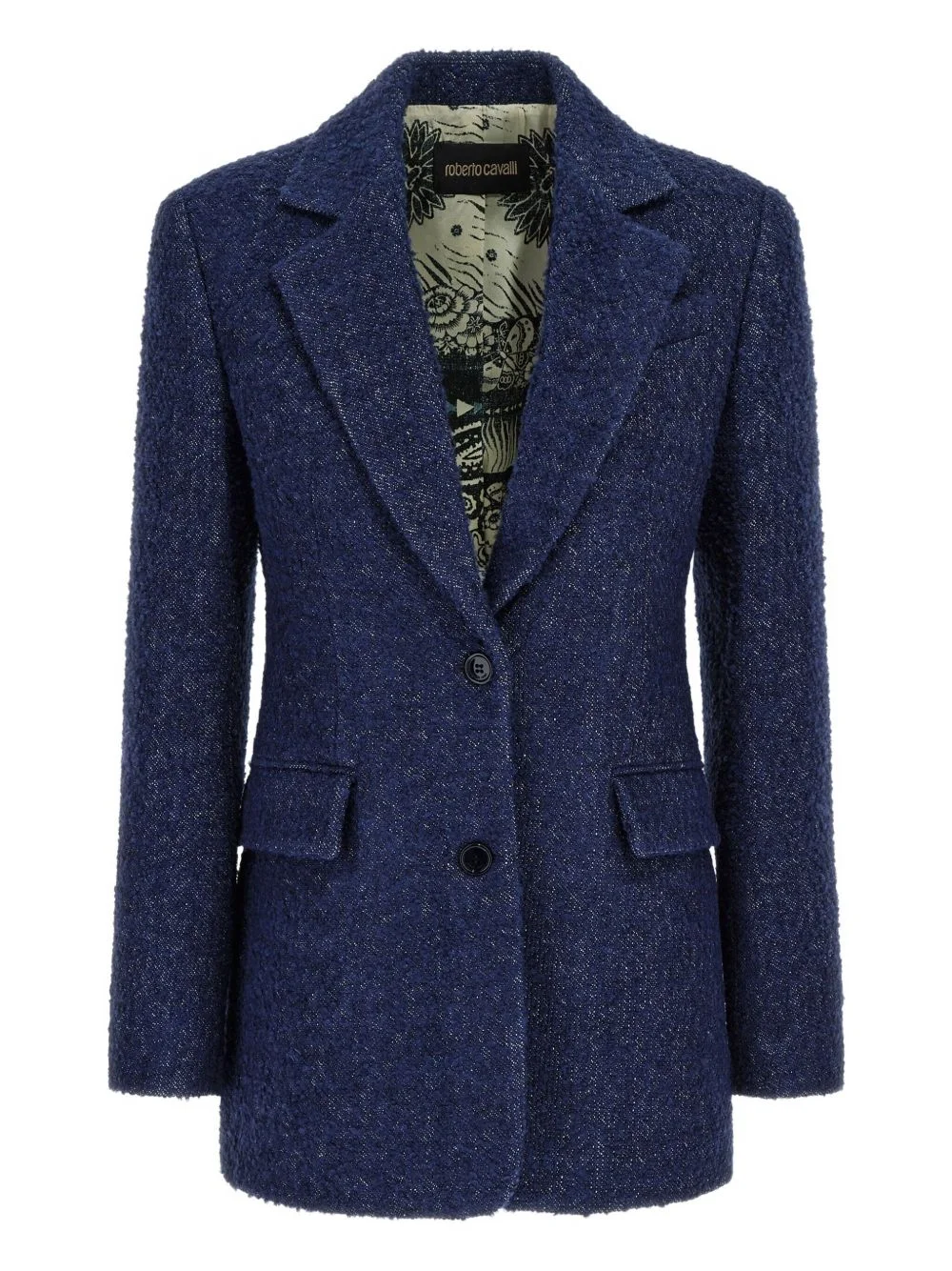 textured single-breasted blazer Highlights - Blue - Single-breasted closure - Notched lapel Made in Italy Composition Outer: Wool 35%, Viscose 24%, Acrylic 14%, Flax 12%, Polyester 8%, Polybutylene Terephthalate (PBT) 7% Lining: Polyester 100%