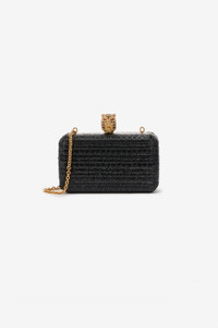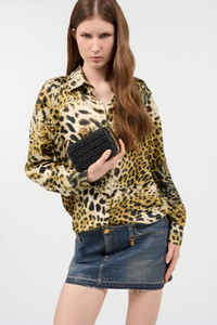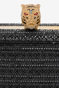 ID: UKB014-PZE10-D0007 This rectangular leather clutch dazzles with an array of luxurious and shiny details in pure Roberto Cavalli style, from the rhinestones in different shapes that make up a monochrome geometric pattern on the entire surface, to the signature crystal-studded tiger head that tops the fastening. The interior, finished with the iconic branded label, is decorated in the Cheetah Skin print, a tribute to the sinuous elegance of cheetahs and the expressive power of animal textures. The accessory comes with a finely-crafted slim chain strap that can be removed with the clasps, allowing it to be carried by hand or over the shoulder. Details - Leather clutch covered with rhinestones - Rectangular design - Rounded corners - Interlocking tiger jewel fastening on top - Chain shoulder strap that can be removed with the clasps - Can be carried over the shoulder or by hand - Inside label with Roberto Cavalli logo - Leather lining with Cheetah Skin print - Made in Italy Care & maintenance Leather - Fur:Bos Taurus / Lining:100% Bos Taurus