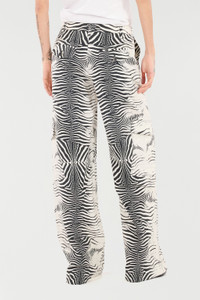 ID: UKT211-3AN49-D0027 The roaring White Tigress print, an expression of Roberto Cavalli’s DNA, is the undisputed star of these women’s stretch cotton pants, which are perfect for adding a touch of wild sophistication to your closet. This piece, with an extra-long straight-leg design, also features multiple pockets: two slanted side panels, two functional pockets on the legs, two buttoned flap pockets on the back and a refined welt pocket on the front. Details - Stretch cotton pants - All-over White Tigress print - Small Roberto Cavalli signature - Straight leg - Extra-long design - Belt loops - Welt breast pocket - Slanted pockets - Flap pockets on the leg - Back pockets with flap and button Care & maintenance External fabric:97% Cotton, 3% Elastane