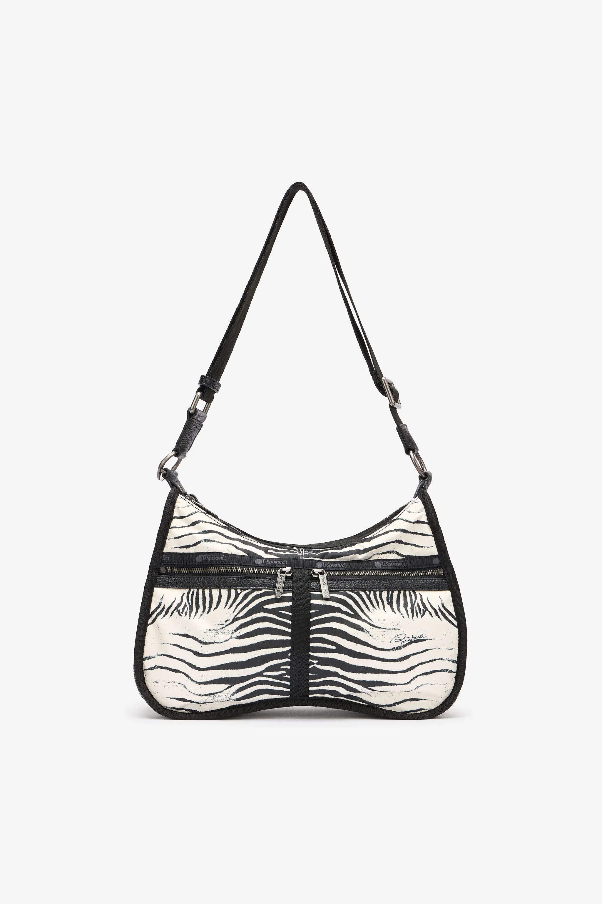 ID: ULL005-IL005-E0473 A bold and stylish Mini Zebra Torino bag with a striking black-and-white print and zippered compartments for secure storage. The adjustable strap allows for effortless crossbody or shoulder wear. Purchase this statement bag today and add a wild touch to your collection. Details - A collaboration between Roberto Cavalli and LeSportSac - 7.5H x 14W x 5D (7.25D Expanded) in, 19H x 35.6W x 12.7D (18.5D Expanded) cm Care & maintenance External fabric:100% Polyester / Secondary fabric:100% Polyurethane / Lining:100% Polyester