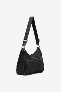 ID: ULL003-IL003-E0469 A sophisticated Black Matelasse Torino bag featuring a quilted texture and sleek design. Dual zippered compartments keep essentials secure, while the adjustable strap offers versatile wear. Purchase this elegant bag today for a timeless addition to your collection. Details - A collaboration between Roberto Cavalli and LeSportSac - 7.5H x 14W x 5D (7.25D Expanded) in, 19H x 35.6W x 12.7D (18.5D Expanded) cm Care & maintenance External fabric:100% Polybutylene terephthalate / Secondary fabric:100% Polyurethane / Lining:100% Polyester