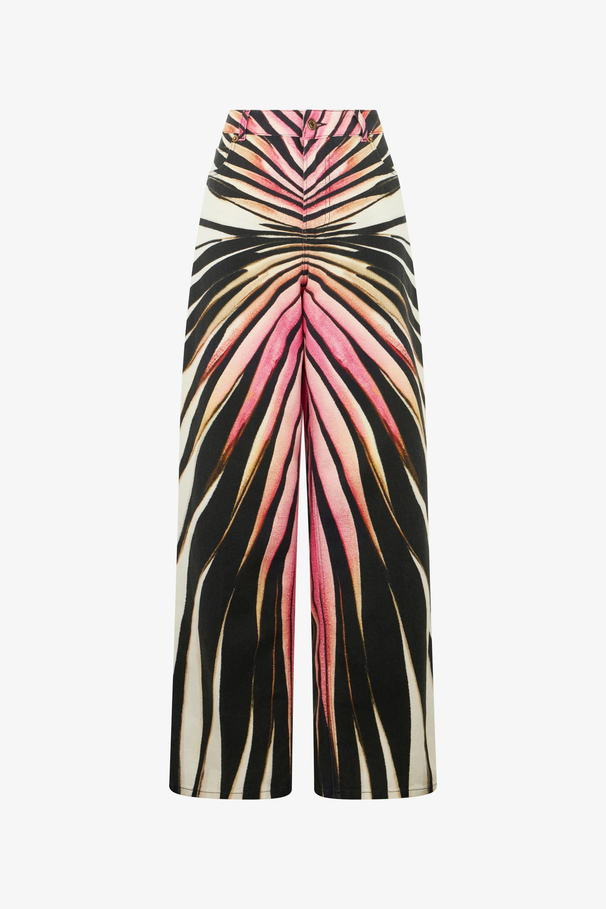 ID: VKJ207-DAM33-02500 These palazzo jeans in stretch cotton denim by Roberto Cavalli are ready to add a touch of luxury to your everyday outfits, thanks to the warm and hypnotic Ray of Pink print that stands out on the entire surface. Details - Stretch cotton denim jeans - Palazzo cut - Lined model - All-over Ray of Pink print - Five-pocket design - Belt loops Care & maintenance External fabric:98% Cotton, 2% Elastane / Lining:65% Polyester, 35% Cotton