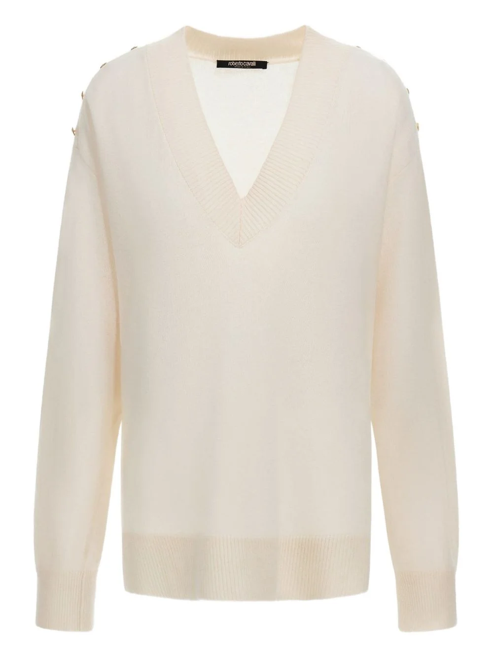 V-neck button-embellished sweater Highlights - Off-white - V-neck - Button embellishments - Long sleeves - Ribbed hem - Wool Made in Italy Composition Wool 100% Washing instructions Read Manufacturer Guidelines
