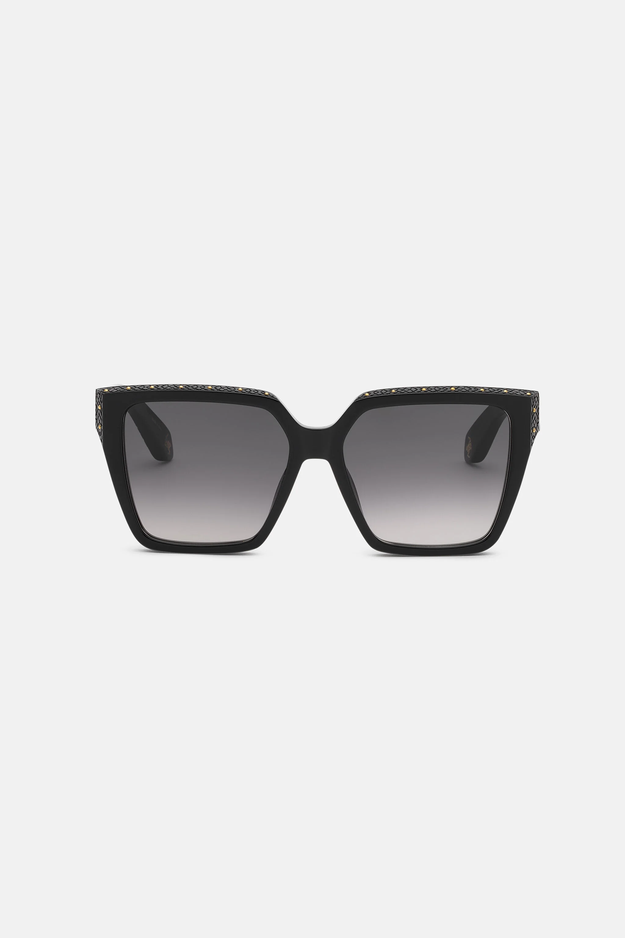 ID: VALD11-ID249-D9889 Wide and femenine rectangular front shape. Roberto Cavalli lettering logo on the temples. Snakeskin pattern engraved on the front and on the end tips. The V version features small studs on the front Details - Sunglasses Roberto Cavalli - Logo collection - Snakeskin pattern on the front and entips - Made in italy - Lenses 56mm Bridge 16mm Temples 140mm - ID: VALD11ID249D9889 - ID: VALD11ID249D9889 Care & maintenance Composition:Acetato, Polyester, Stainless Steel