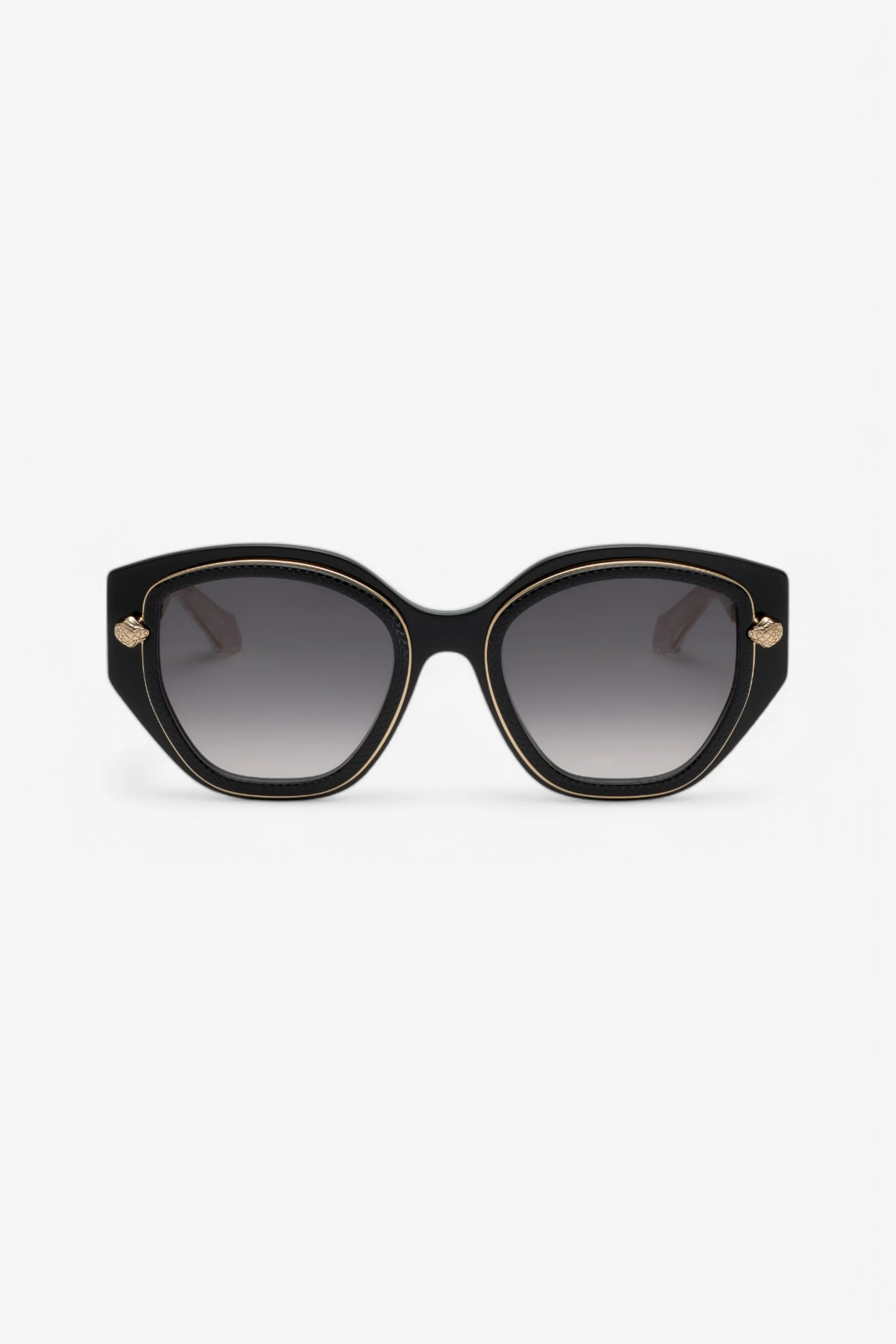 ID: UALD05-ID200-D9889 Wide and feminine shape of the front. The peculiarity of this model is the construction of the front: an acetate layer enriched with a metal ring and another acetate ring engraved with a laser process. Metal temples reproducing the snake shape. Details - Sunglasses Roberto Cavalli - Snake collection - Metal ring on acetate front - Made in italy - Lenses 52mm Bridge 21mm Temples 140mm - ID: SRC096M520700 Care & maintenance Composition:Polyester, Berillio, Acetato, Polybutylene terephthalate, Stainless Steel