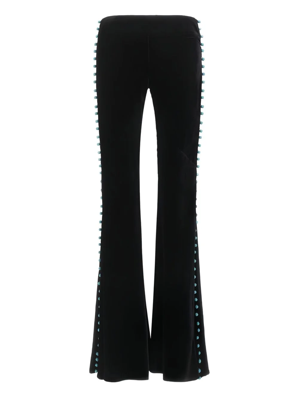 bead-embellished flared trousers Highlights - Black - Bead embellishment - Concealed zip fastening - High waist Made in Italy Composition Silk 100%, Viscose 82%, Rayon 18% Washing instructions Read Manufacturer Guidelines