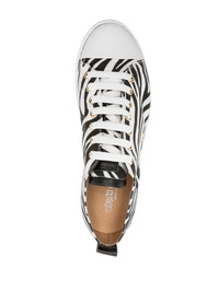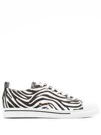 zebra-print leather sneakers Stamped with a classic black and white zebra print, these sneakers are made from leather to a low-top silhouette. The Roberto Cavalli design boasts a lace-up fastening and flat rubber sole. Highlights - Black/white - Leather - Zebra print - Pull-tab at the heel - Branded footbed - Front lace-up fastening - Rubber toecap - Round toe - Flat rubber sole Made in Italy Composition Lining: Pig Leather 100% Sole: Elastodiene 100% Outer: Polyester 90%, Bos Taurus 10%