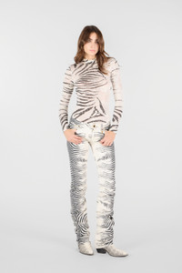 ID: UKJ220-DAN49-D0027 The iconic White Tigress print, an expression of Roberto Cavalli DNA, is the star of these pants with a slightly flared leg, which are perfect for adding a touch of wild sophistication to your closet. Details - Stretch cotton pants with White Tigress print - Five-pocket design - Belt loops - Golden charm with RC Monogram on a belt loop - Slightly flared leg - Branded tag on back - Lined model - Zipper and button fastening Care & maintenance External fabric:98% Cotton, 2% Elastane / Lining:65% Polyester, 35% Cotton