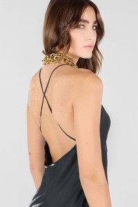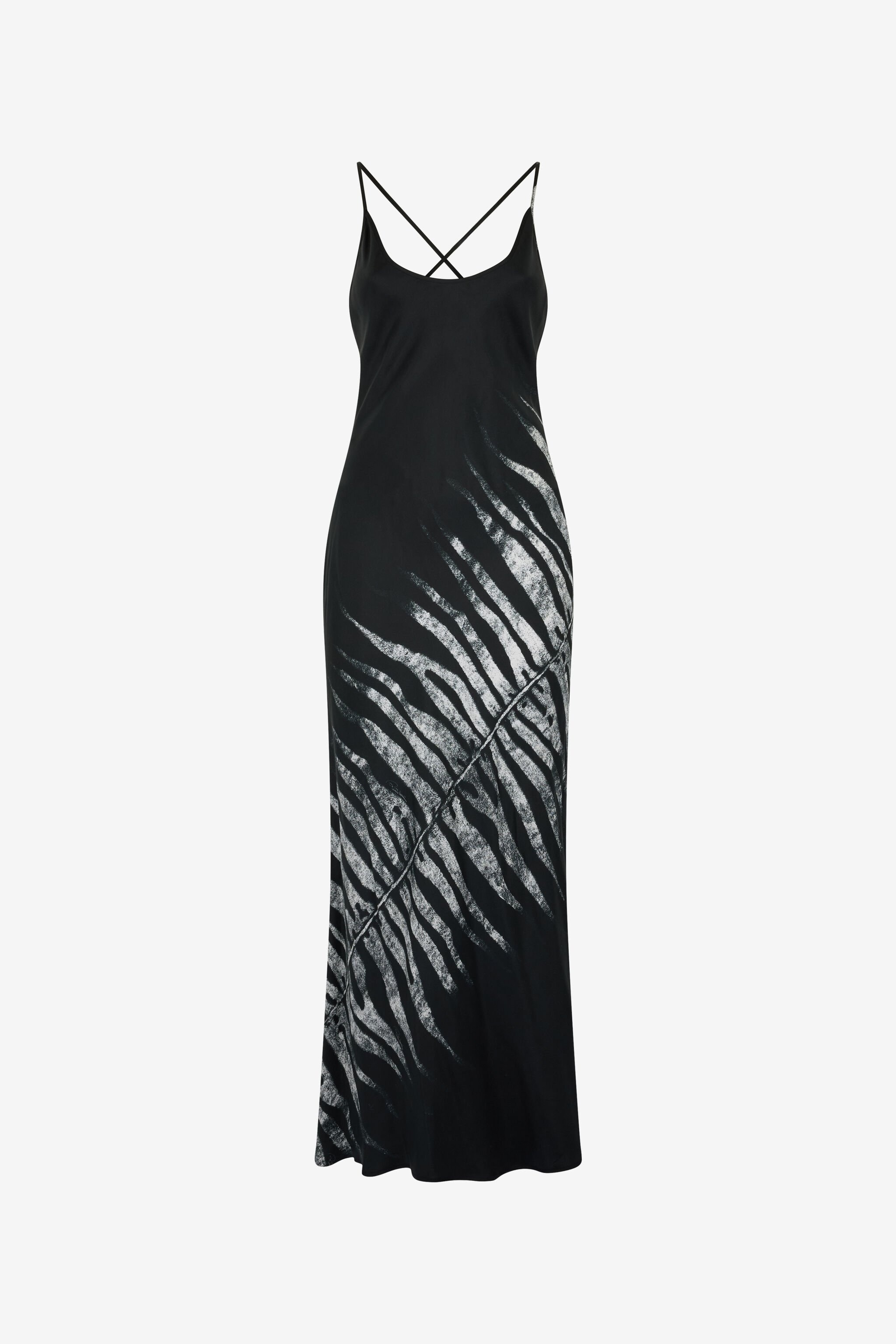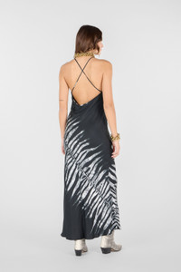 ID: UKT142-4QN50-D0146 Feline elegance once again leaves its mark on the Roberto Cavalli universe in this long pure silk dress embellished on the front and back by a bold White Tigress print. Details - Long silk dress with White Tigress print - Rounded neckline - Thin straps that cross at the back - Backless Care & maintenance External fabric:100% Silk