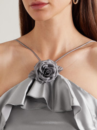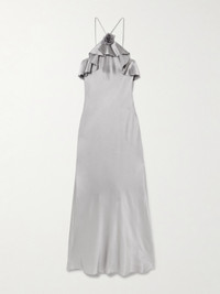 Appliquéd Ruffled Silk-satin Halterneck Midi Dress