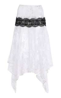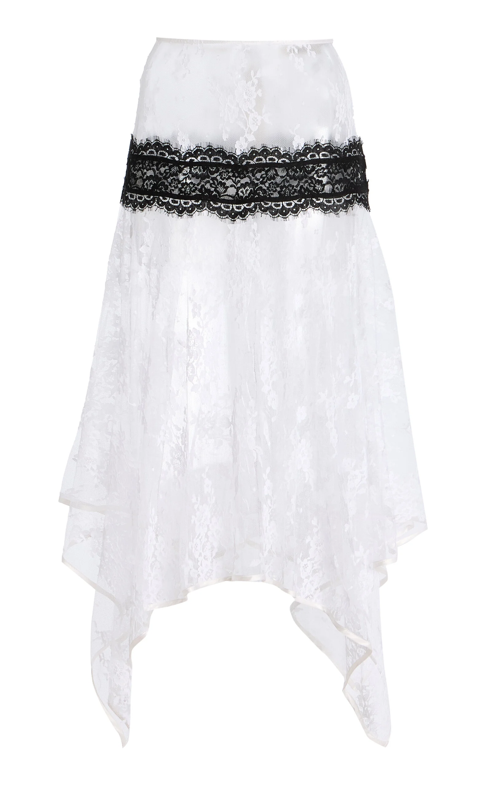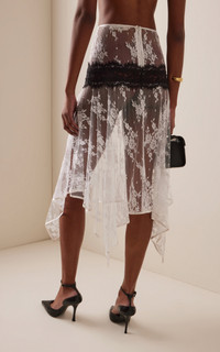 Asymmetrical Cotton-Blend Lace Midi Skirt white
