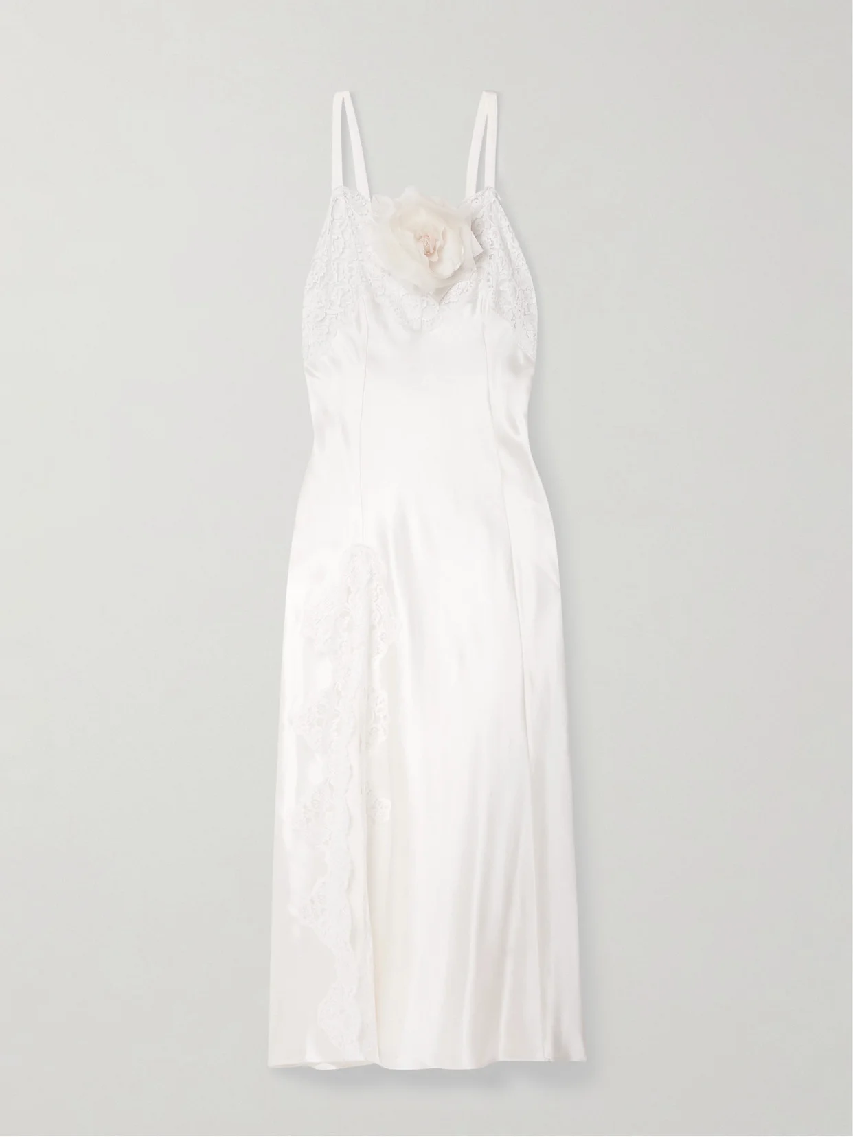 Embellished Lace-trimmed Silk-satin Midi Dress