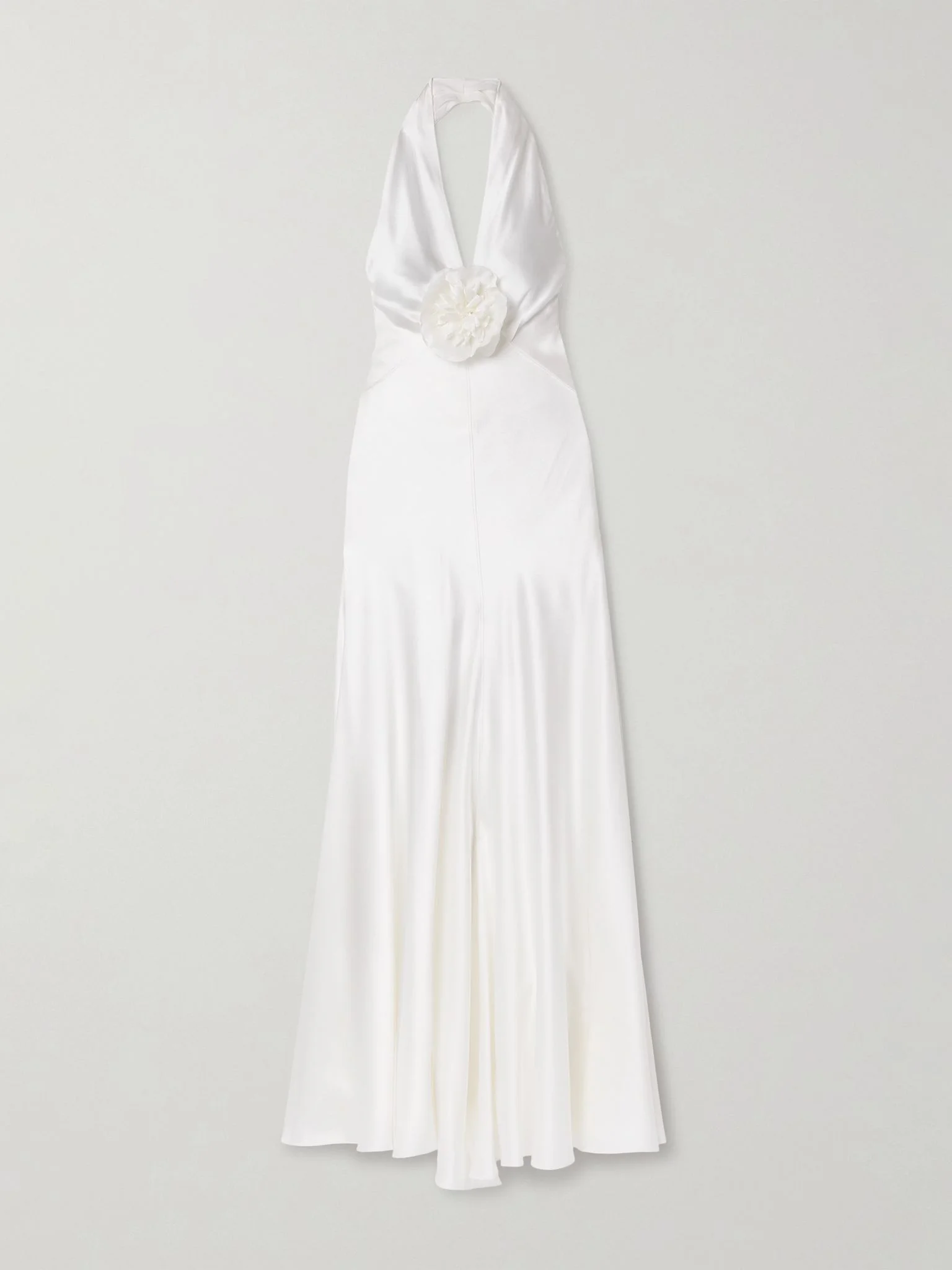 EXCLUSIVE AT NET-A-PORTER. When it comes to romantic, contemporary bridal wear, Rodarte is the name to know. This gown is cut from glossy silk-charmeuse and has an elegant halter neckline and low, open back. It's adorned with a floral pin that can be detached, or even incorporated into an updo. Size & Fit - Fits true to size, take your normal size - Intended to be fitted at the bust and waist, slightly loose at the hip - Lightweight, fluid, non-stretchy fabric - Model is 177cm/ 5'10" and is wearing a US 2 Model measurements: - Bust: 80cm/ 31.5" - Waist: 65cm/ 25.5" - Hip: 93cm/ 36.5" Details & Care - White silk-charmeuse - Concealed hook and zip fastening at side - 100% silk - Dry clean