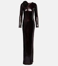 Floral-appliqué sequined gown