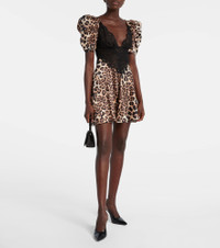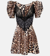 Rodarte puts romance and storytelling at the forefront of its grand and mesmerizing designs. Made from lustrous silk satin, this minidress features a captivating leopard print and is enriched with an exquisite lace insert at the front. Product Details - Material: 100% silk - Care instructions: dry clean - Made in the USA - Designer color name: Leopard Print - Item color: beige, black - Lining: 100% nylon - Trim: 75% cotton, 13% polyamide, 12% nylon - Collar: V-neck - Closure: concealed zipper, zipped back, hook-fastening back - Item number: P01058306 Size & Fit - True to size - Oversized shoulders - Semi-sheer - Cinched waist - Non-stretchy fabric - The model seen in the picture is 178cm-5'10" and wearing a size US 4